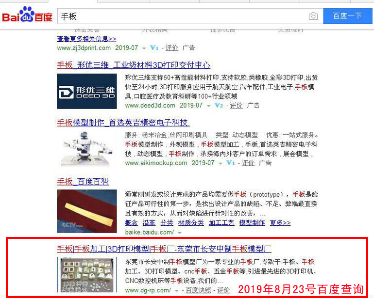 手板加工 : 2019-02-28上線    2019-03-05百度第20(原為第5頁 第7位)     2019-03-13百度第10名    2019-03-19百度第3名    2019-03-25百度第1名